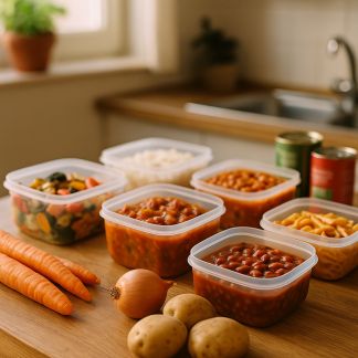 - Batch cooking thématique : Préparez, lors de votre session, les éléments d’un menu asiatique (riz sauté, légumes, sauce teriyaki), italien (sauce bolognaise, pâtes fraîches, portion de légumes grillés), ou dîner express (quiche, soupe, salade cuite).