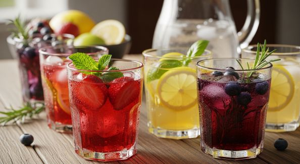 - À associer : tranches d’agrumes (citron, orange, pamplemousse), fruits rouges frais ou surgelés, plantes aromatiques (menthe, basilic), épices (gingembre, cannelle, cardamome).